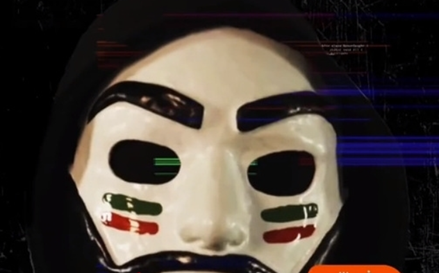 당시 이란 국영방송 해킹으로 갑작스럽게 송출된 화면에서는 가면이 짧게 등장하고 이어 이란 최고지도자 알리 하메네이의 사진이 화염에 불타는 장면이 송출되었습니다. 그리고 붉은 총의 조준점이 알리 하메네이의 이마 중앙을 비추는 모습이 보였습니다.
